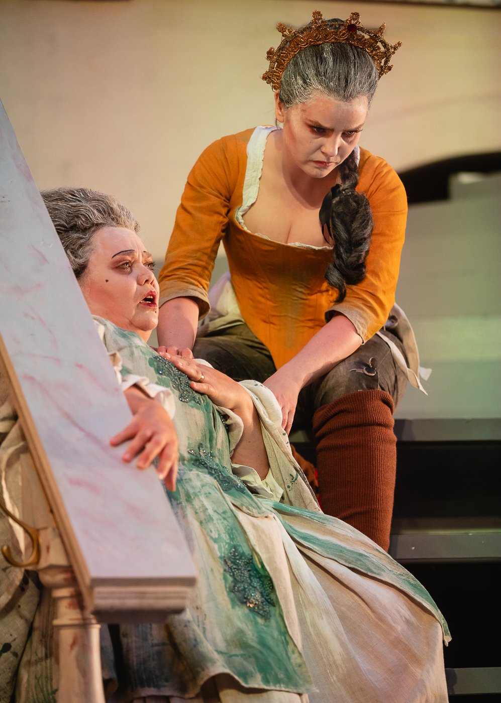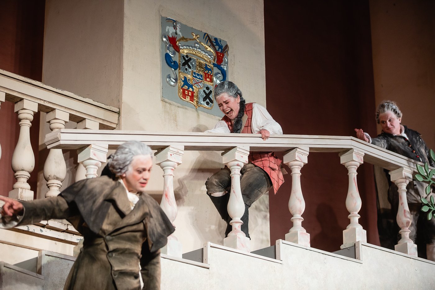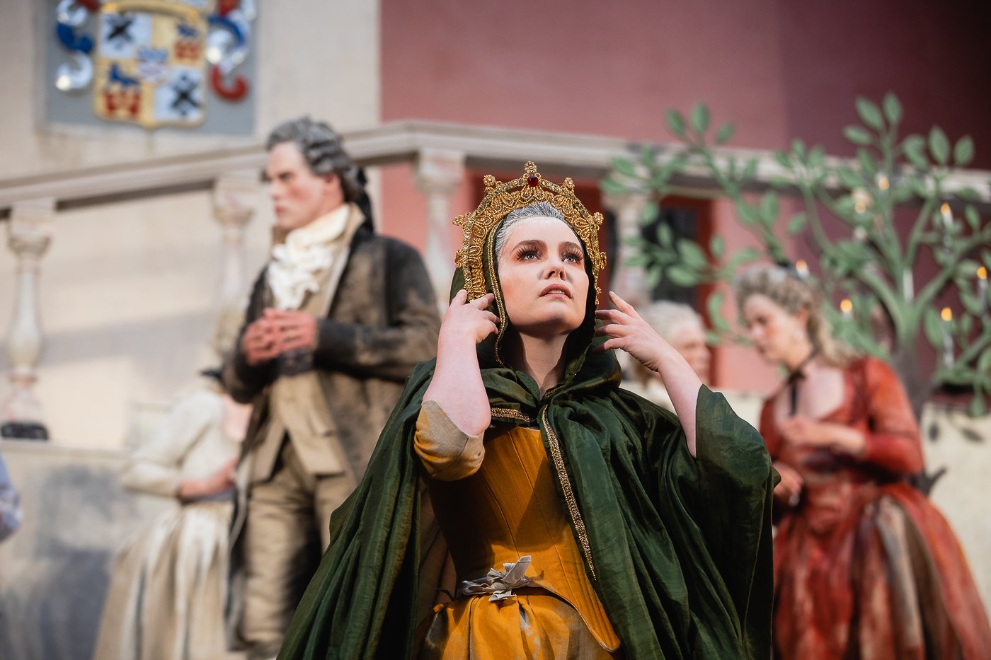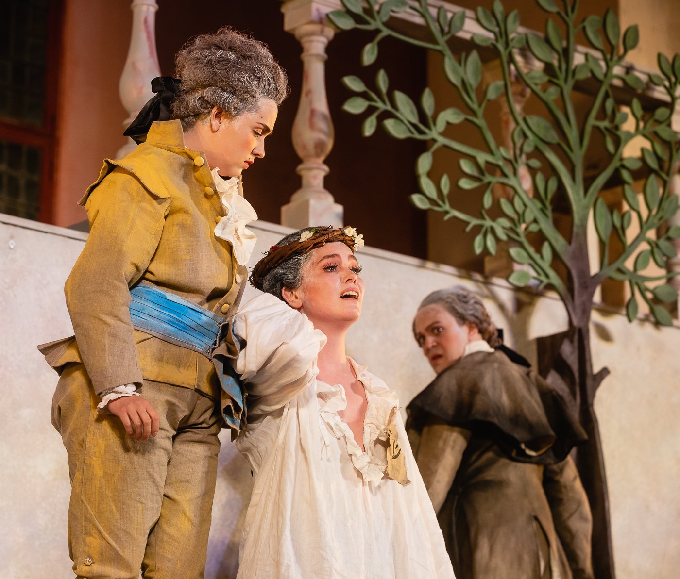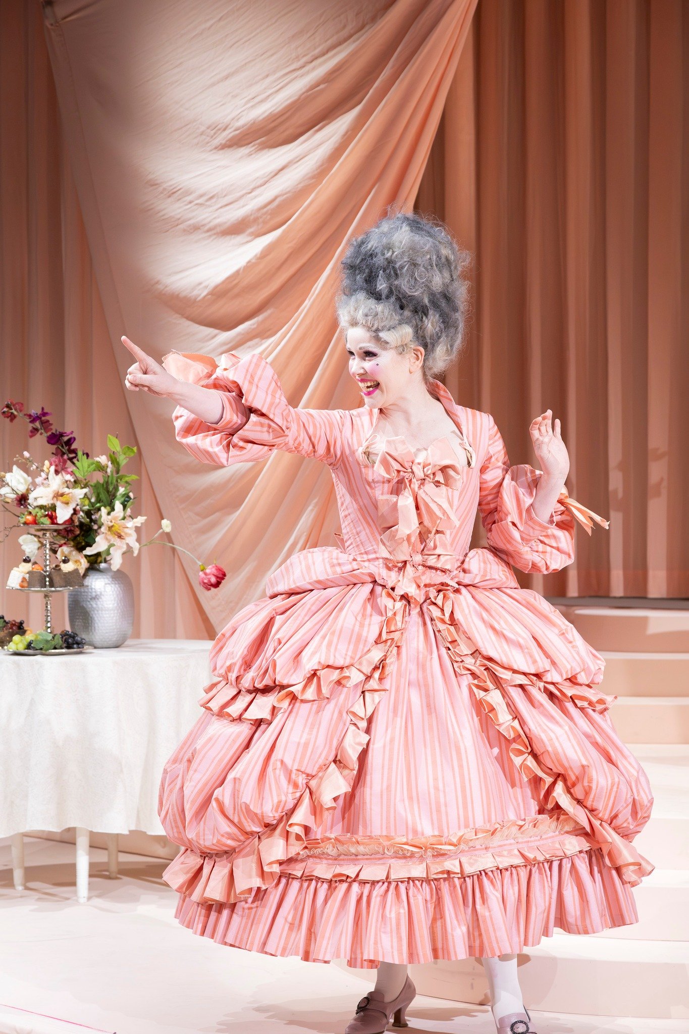 But Scaramouche was however put in his place by his wife, La Scaramouche, who with the beautifully singing mezzos soprano Sidsel Aja Eriksen radiated a sassy magnetism, even as she stood in the background eating grapes. She has two entertaining numbers, the first a ballad about an innocent shepherdess with her white lamb, performed in front of Renés lustful entourage. With coquettish coloraturas with the faint glow of Strauss’ Ariadne auf Naxos. It is no wonder Ludvig 15th takes off with this lamb.