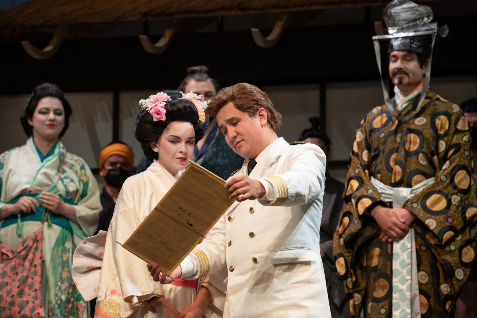 Her voice is beautiful and full, the vocal technique is solid, and we particularly appreciated her short-winded diminuendos, "à la Caballé". The characterization of the character is totally convincing, from the very young woman of the beginning, her entry is quite astonishing, to the "Americanized" woman, then to the Cio-Cio-San at the end, who puts on her geisha outfit.