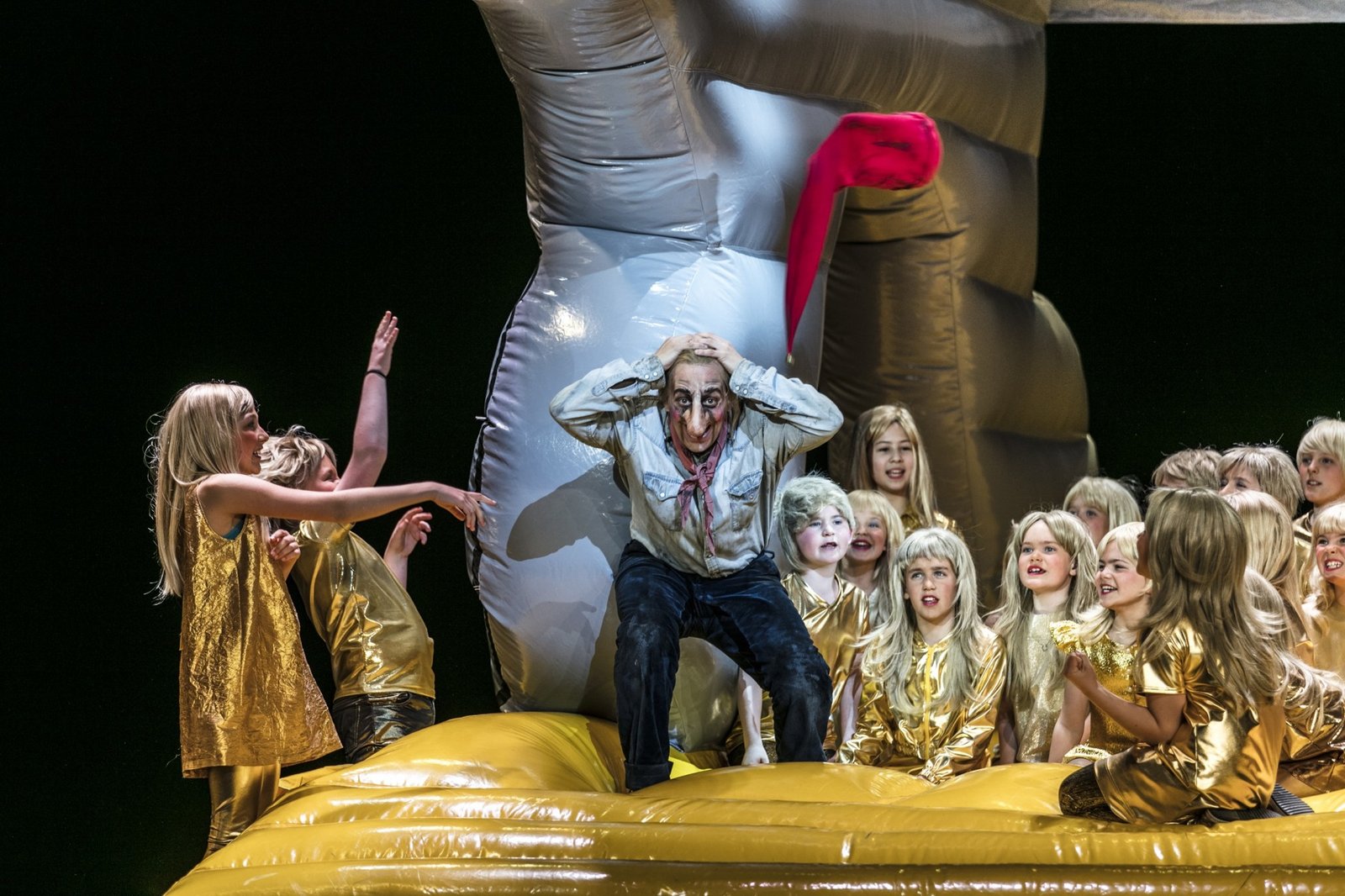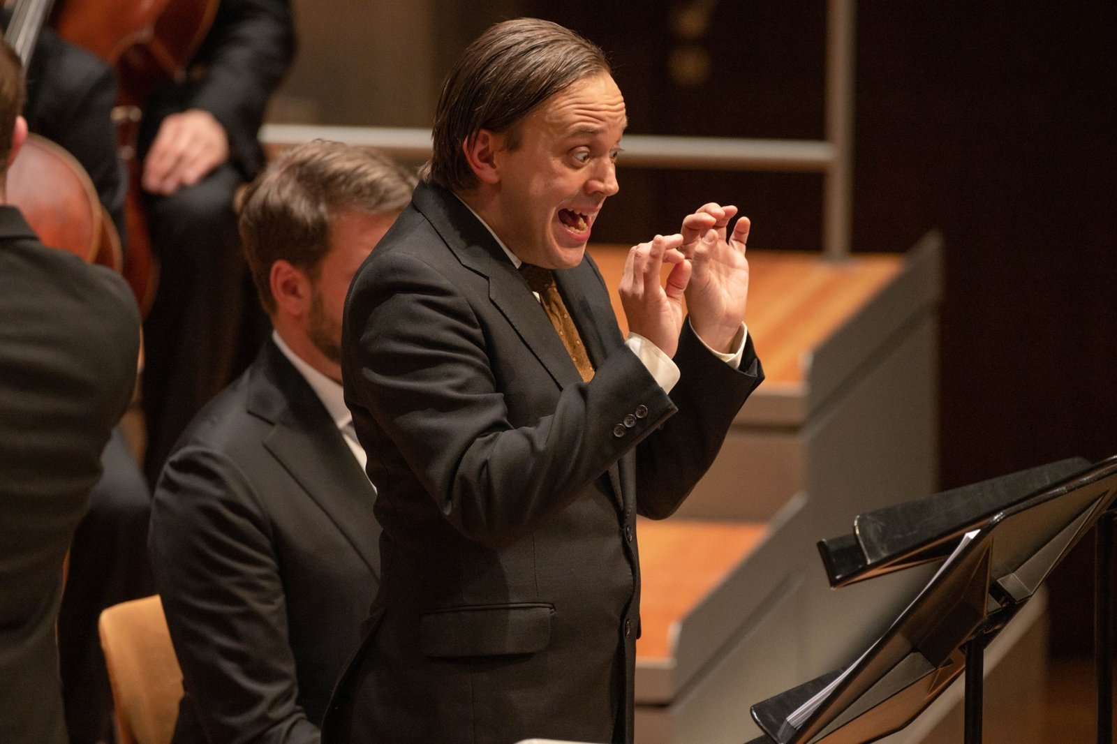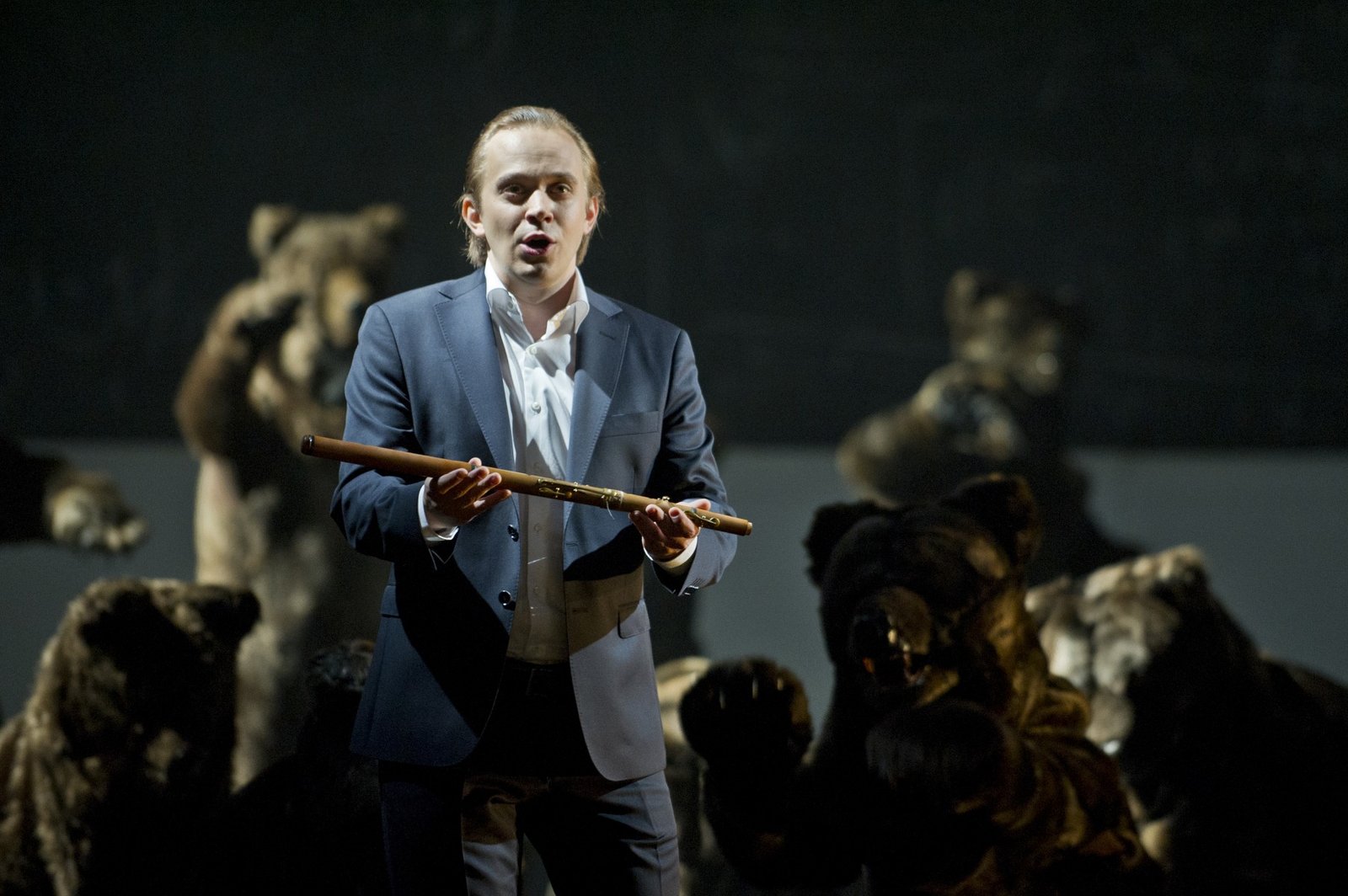 His unusual scenic presence has lent itself to characters such as Flute in in Peter Hall’s legendary take on A Midsummer Night’s Dream at Malmö Opera (2021), Police Inspector, the extreme role in Shostakovich’s The Nose at Royal Danish Opera (2022), Orfeo in a performance version of Orfeo, Lollike’s last show as director of Sort/Hvid (2023), Pong in Turandot at Malmö Opera (2024) and the Royal Swedish Opera (2013), Mercury in Orpheus in the Underworld at Malmö Opera (2020), Phillip von Hessen in the Luther opera Schlagt sie tot! at Malmö Opera (2019), The Holy Fool in Boris Godunov, directed by Peter Konwitschny at Gothenburg Opera (2018), Tanzmeister and Scaramuccio in Ariadne auf Naxos at Gothenburg Opera (2018), Remendado in Carmen at Malmö opera (2018) and the Royal Swedish Opera (2012), Sandon in Swedish national opera Aniara at Malmö Opera (2017), Trotteltroll in Die Schneekönigin at Deutsche Oper am Rhein (2016), Niko and Hüseyin in Gegen die Wand at Deutsche Oper am Rhein (2014), Mond in Vom Mädchen, dass nicht schlafen wollte at Deutsche Oper am Rhein (2014) and then later again at Theater Bonn (2016), Demo – the stuttering hunchback – in Il Giasone at Drottningholm Palace Theatre (2012).